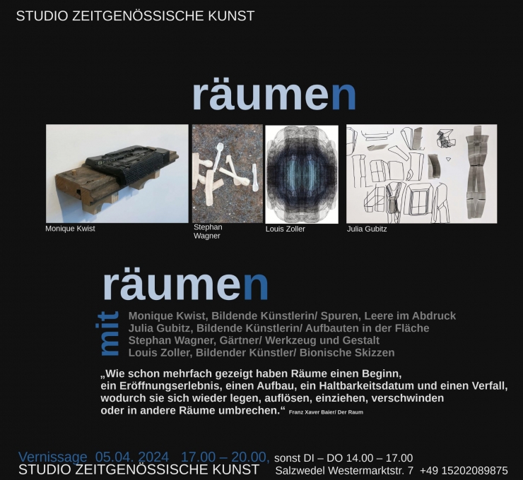 2024 Räume-n-, Salzwedel, Germany: Studio für Zeitgenössische Kunst, with Julia Gubitz, Louis Zoller, Stephan Wagner